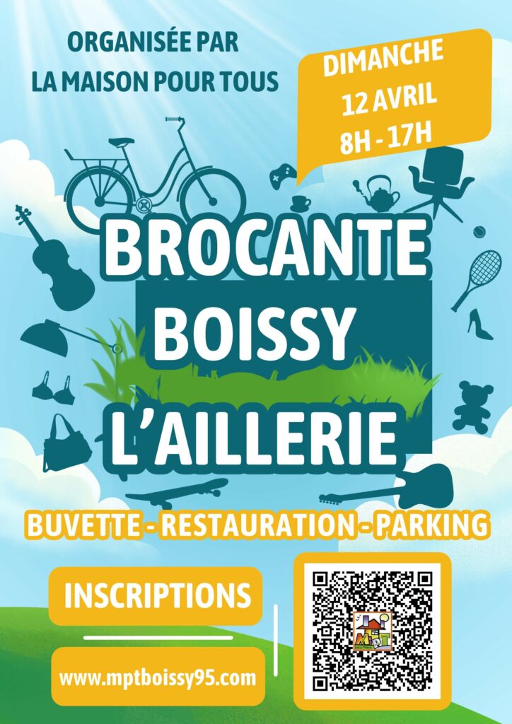 Comme chaque année, la MPT organise la brocante, vide-greniers de Boissy l'Aillerie qui se tiendra le :